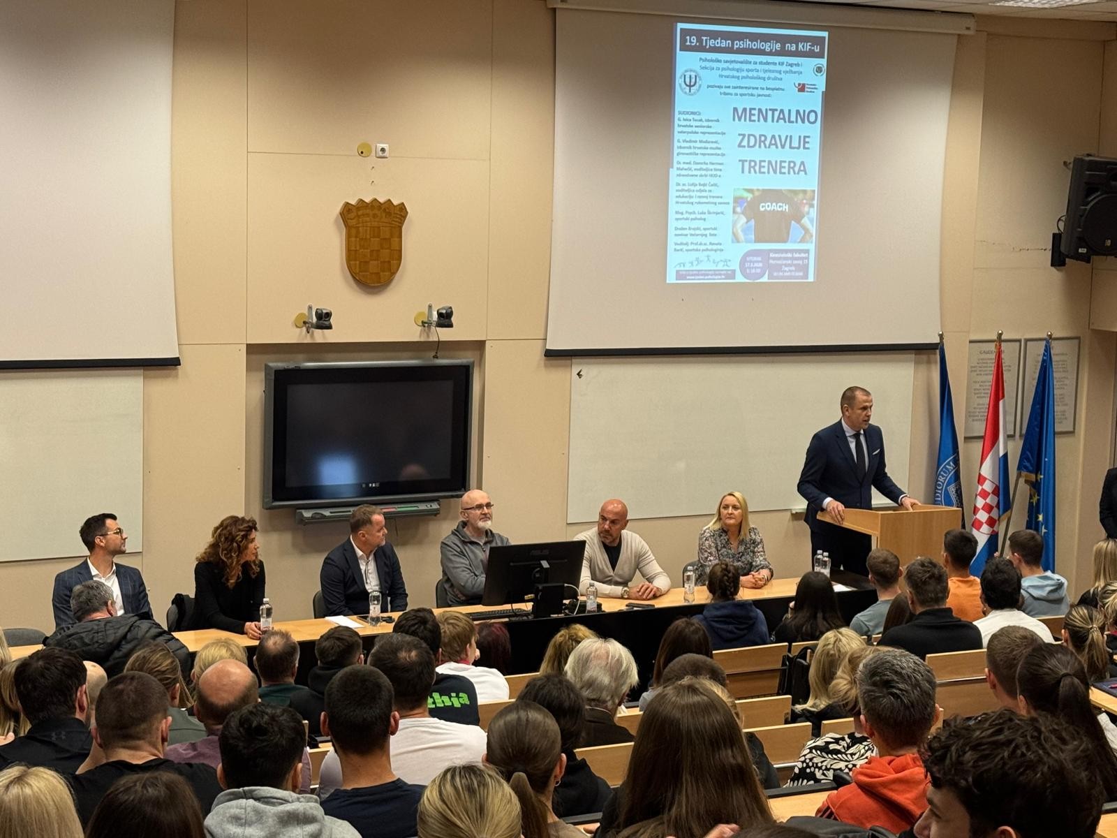 Pred prepunom dvoranom u kojoj se tražilo mjesto više održana je tribina „Mentalno zdravlje trenera“, koja je okupila trenere, sportaše i studente zainteresirane za jednu od najvažnijih tema suvremenog sporta.
